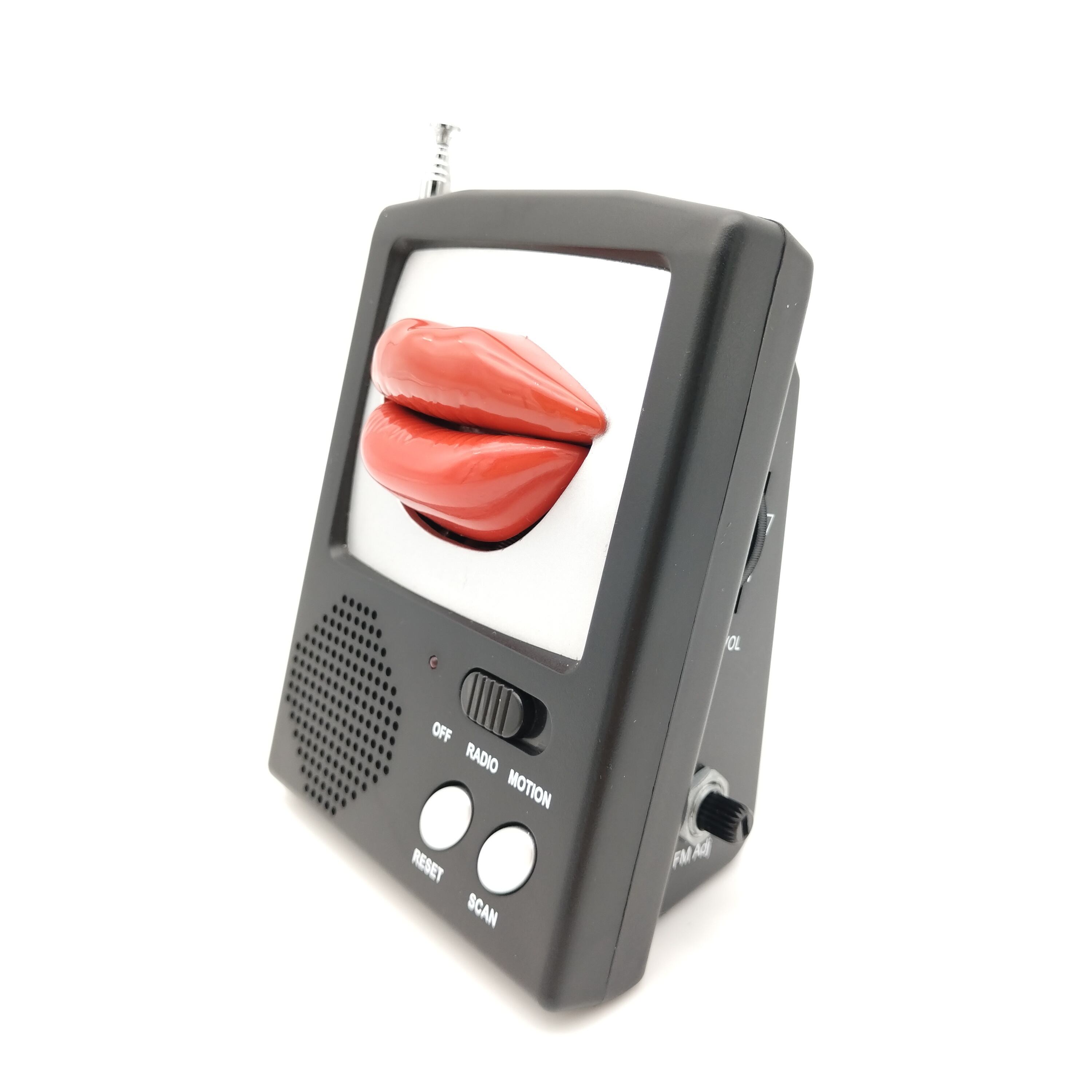 ラジオが話しているように唇が音声に合わせて開いたり閉じたり動きます。とても存在感のあるラジオです。