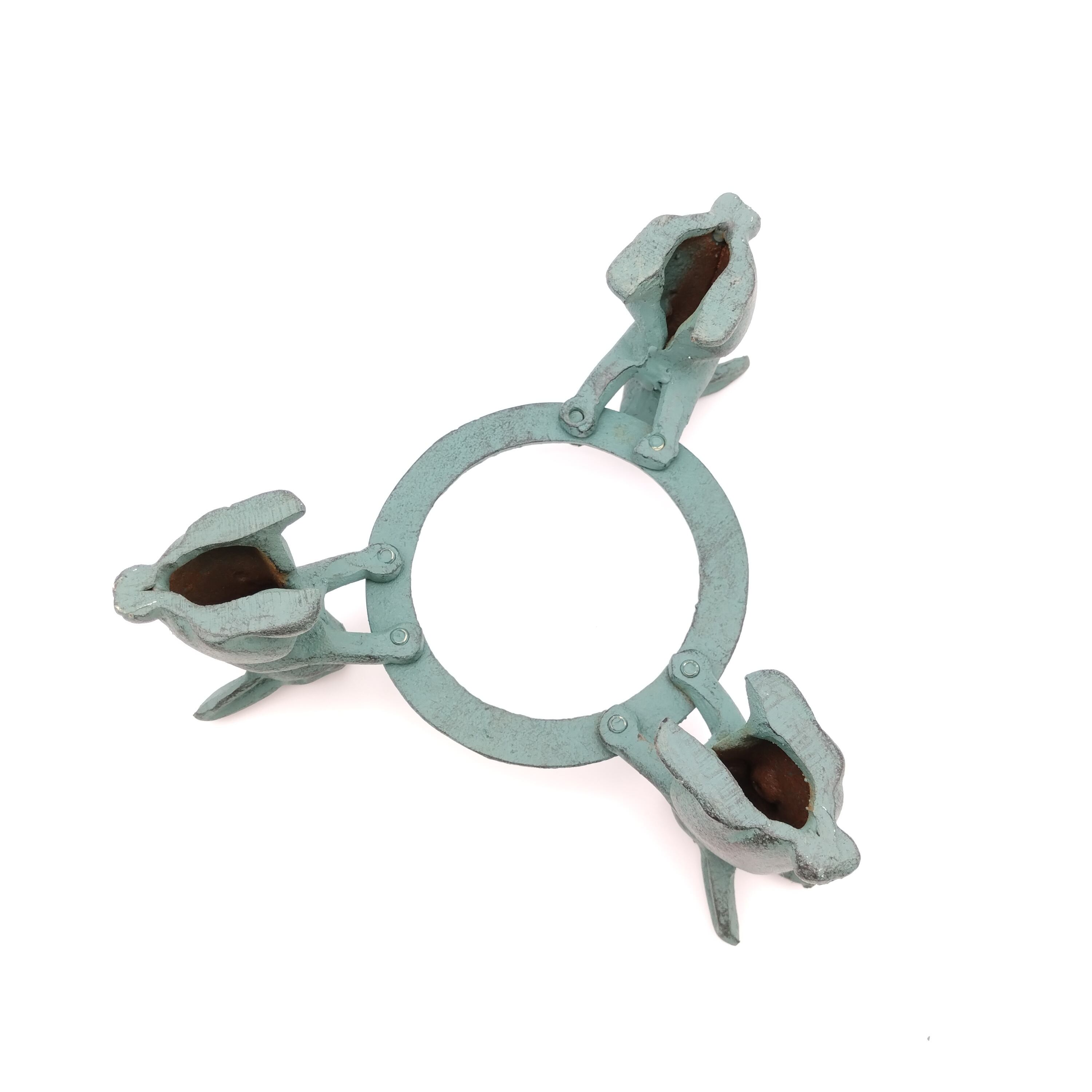 三羽の兎が円を囲んでいる一風変わった五徳です。鉄瓶やポットなどをのせると兎たちが持ち上げているようにみえて可愛らしいです。