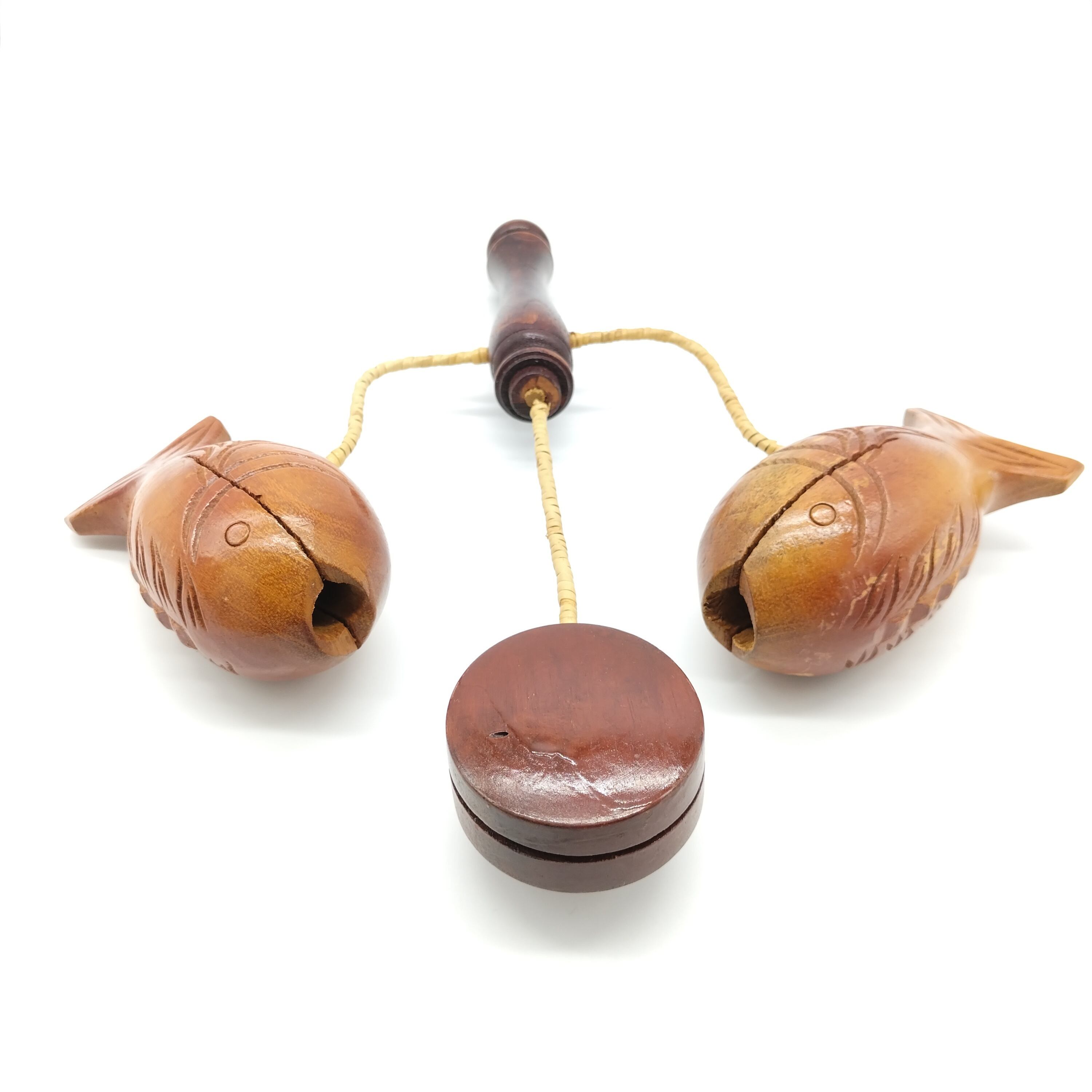2匹の魚とまるい玉が絶妙なバランスで繋がっている不思議なベトナムの打楽器です。形が特徴的なのでオブジェとして飾るのもおすすめです。