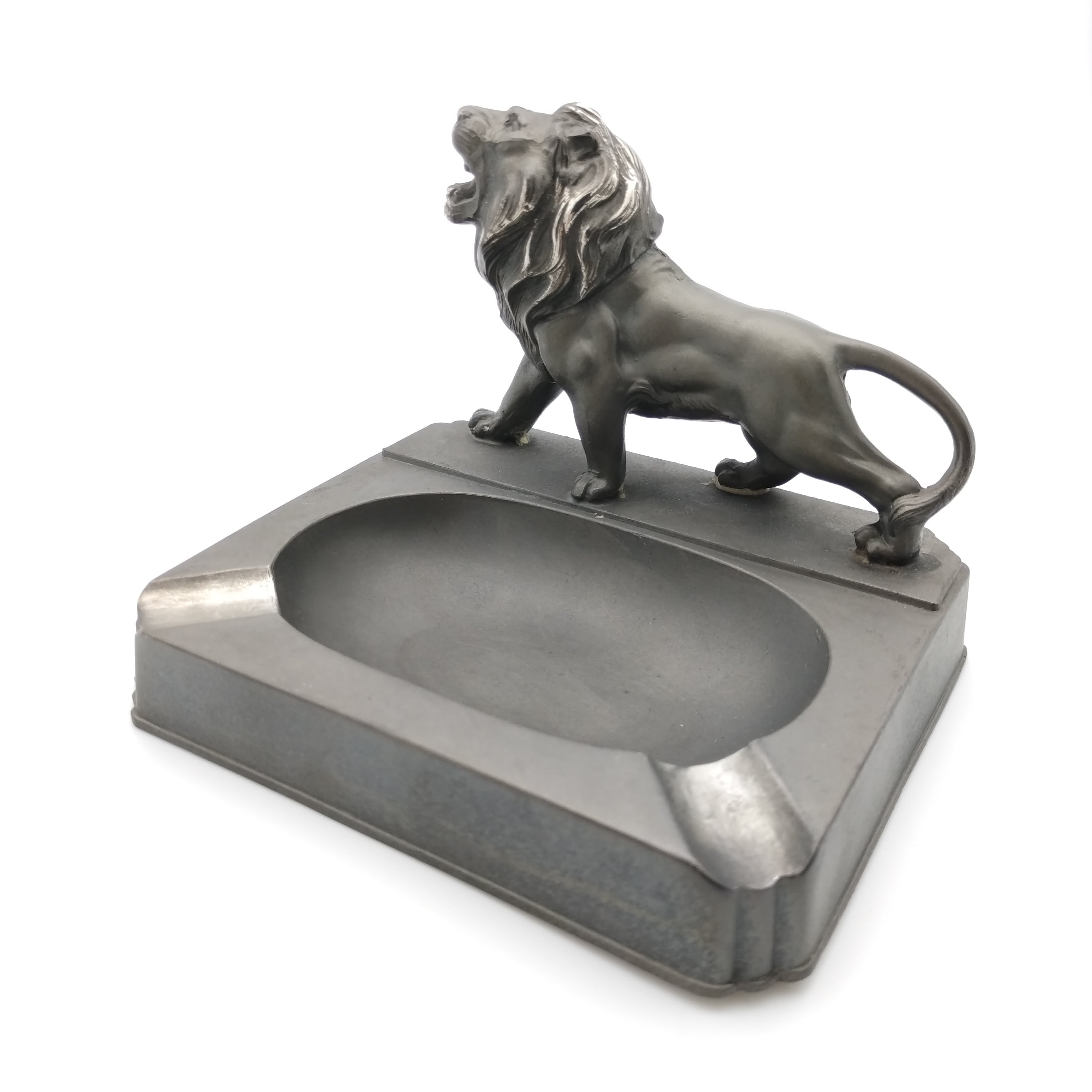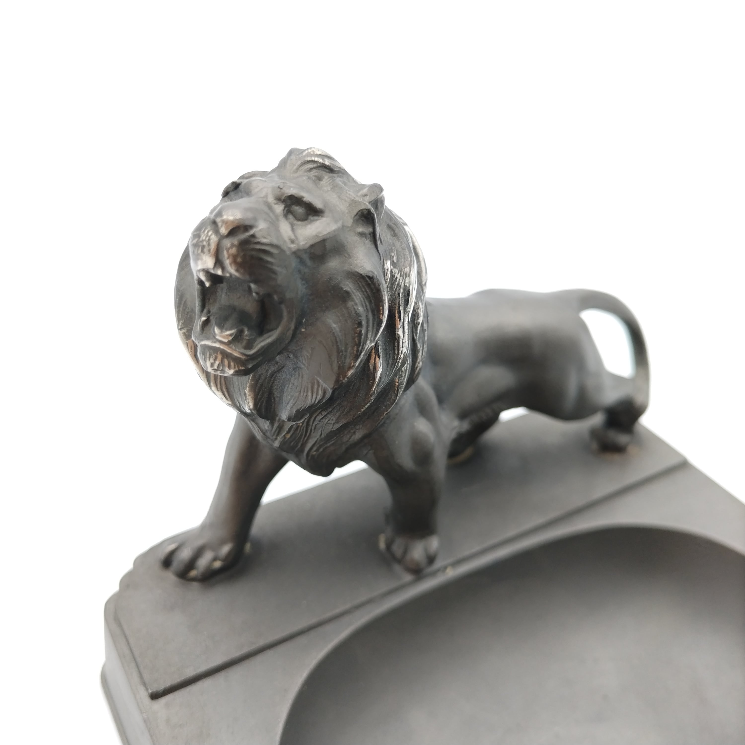 細部まで造形された力強いライオンがあしらわれてる金属製灰皿です。