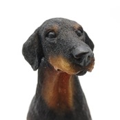リアルなドーベルマン犬の置物です。まるで守衛してくれているように静かにお座りしています。