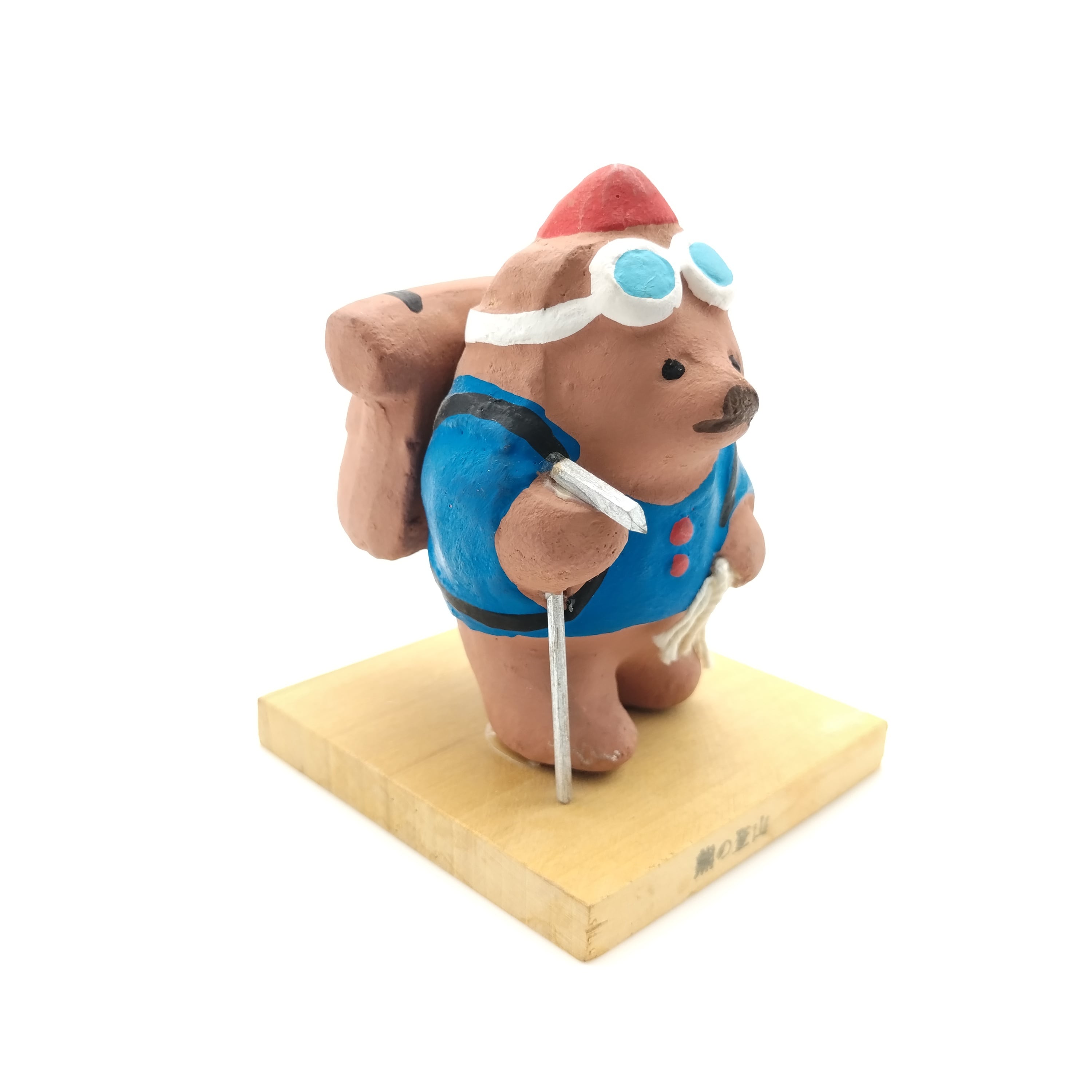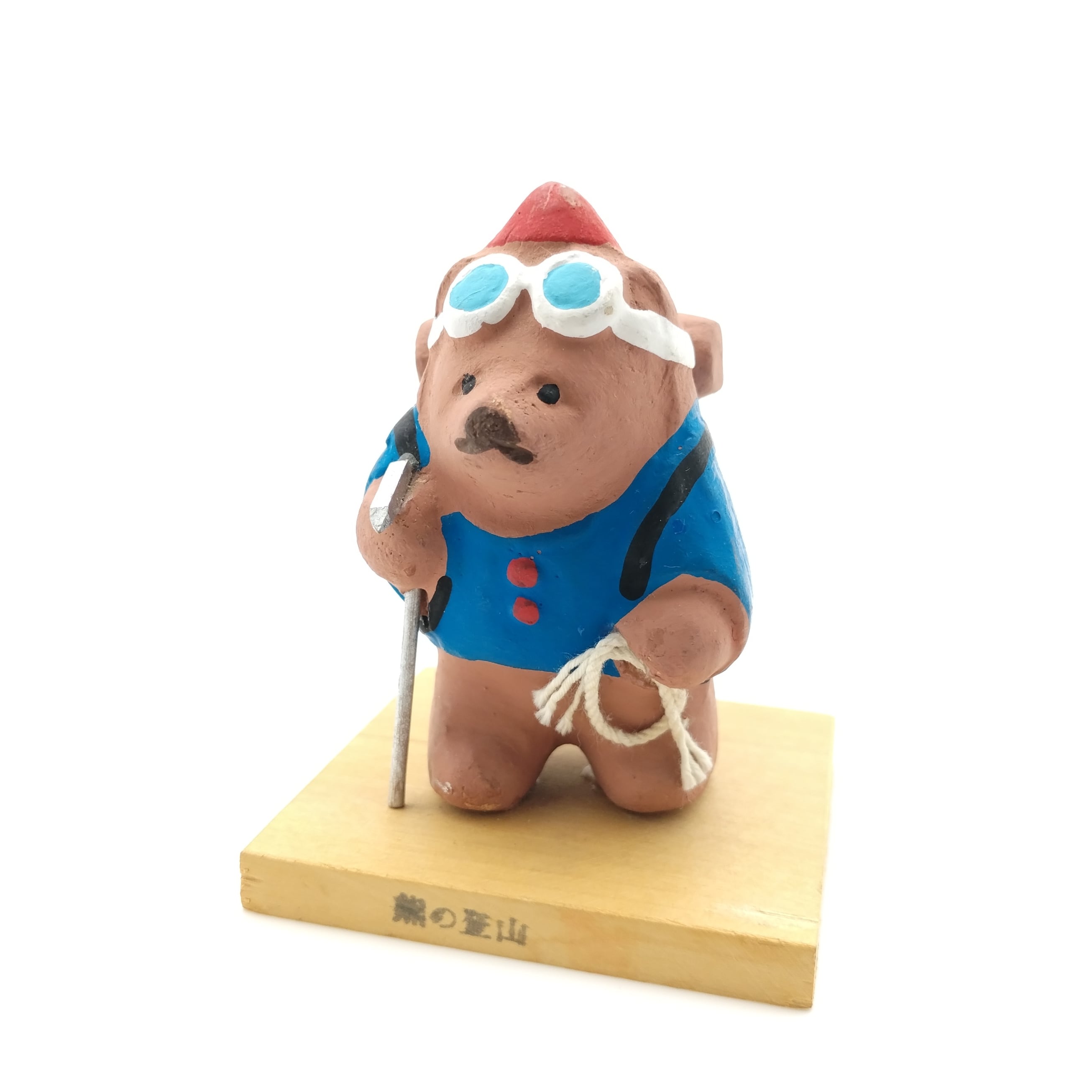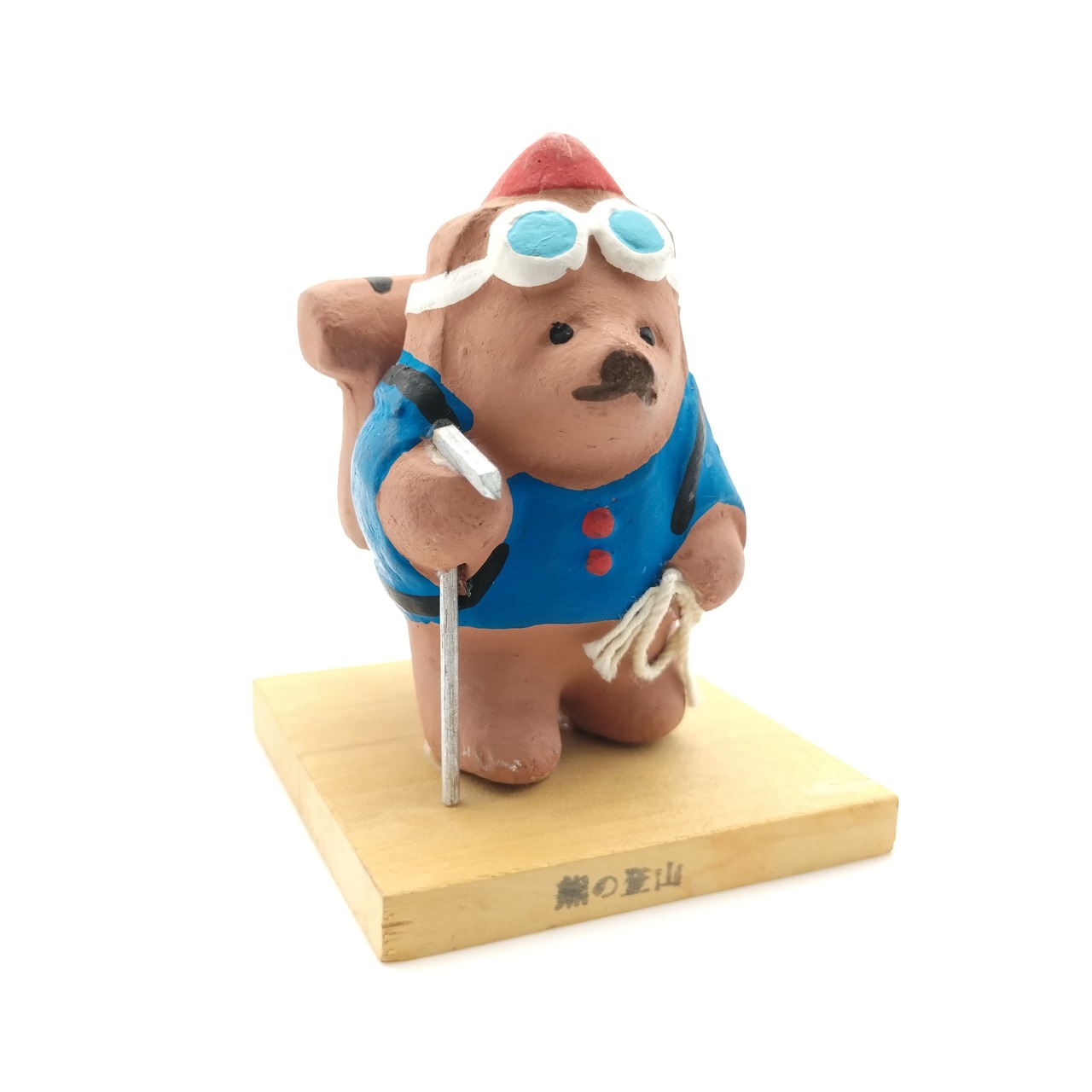 しっかり装備をして山登りをしている熊を表現した珍しい土人形です。