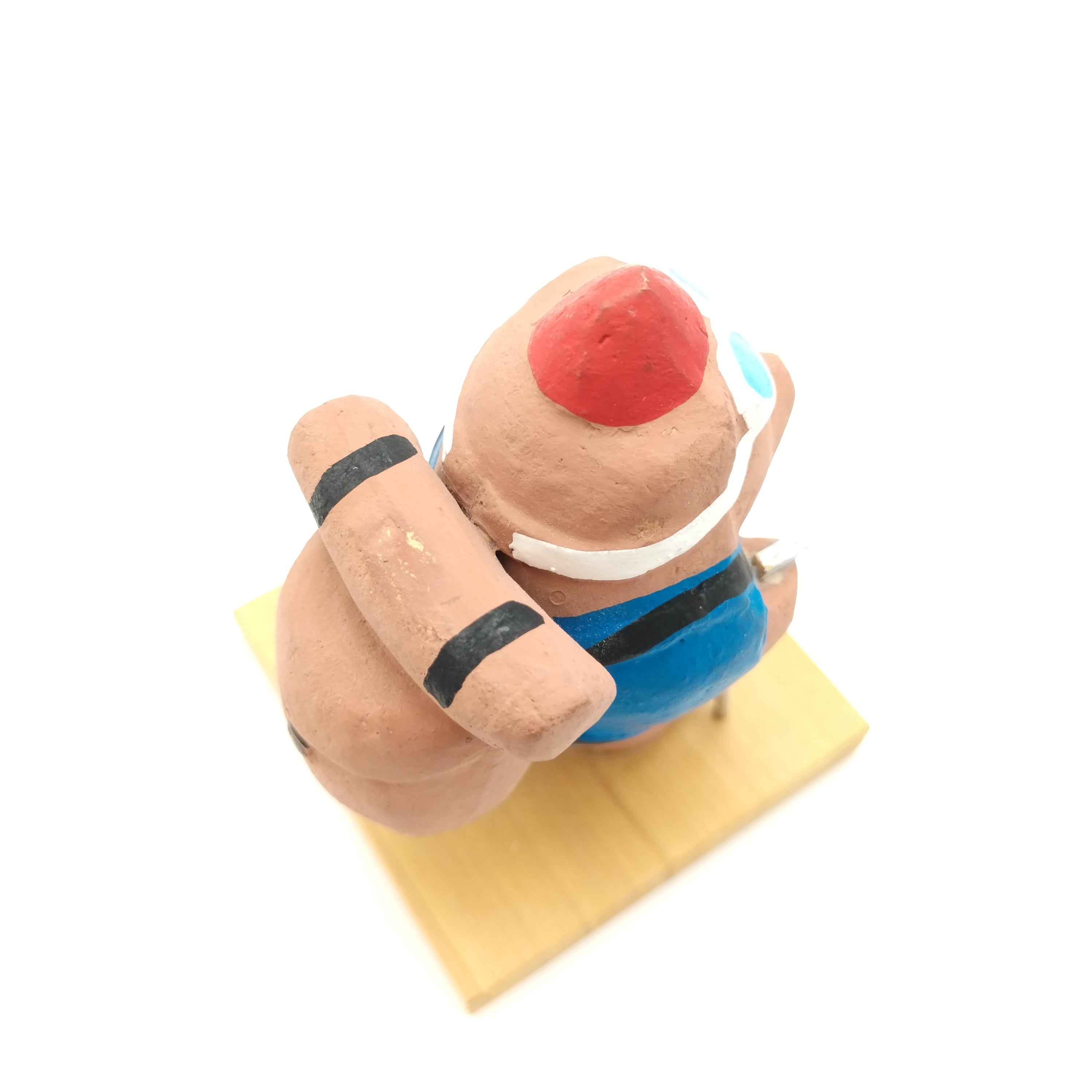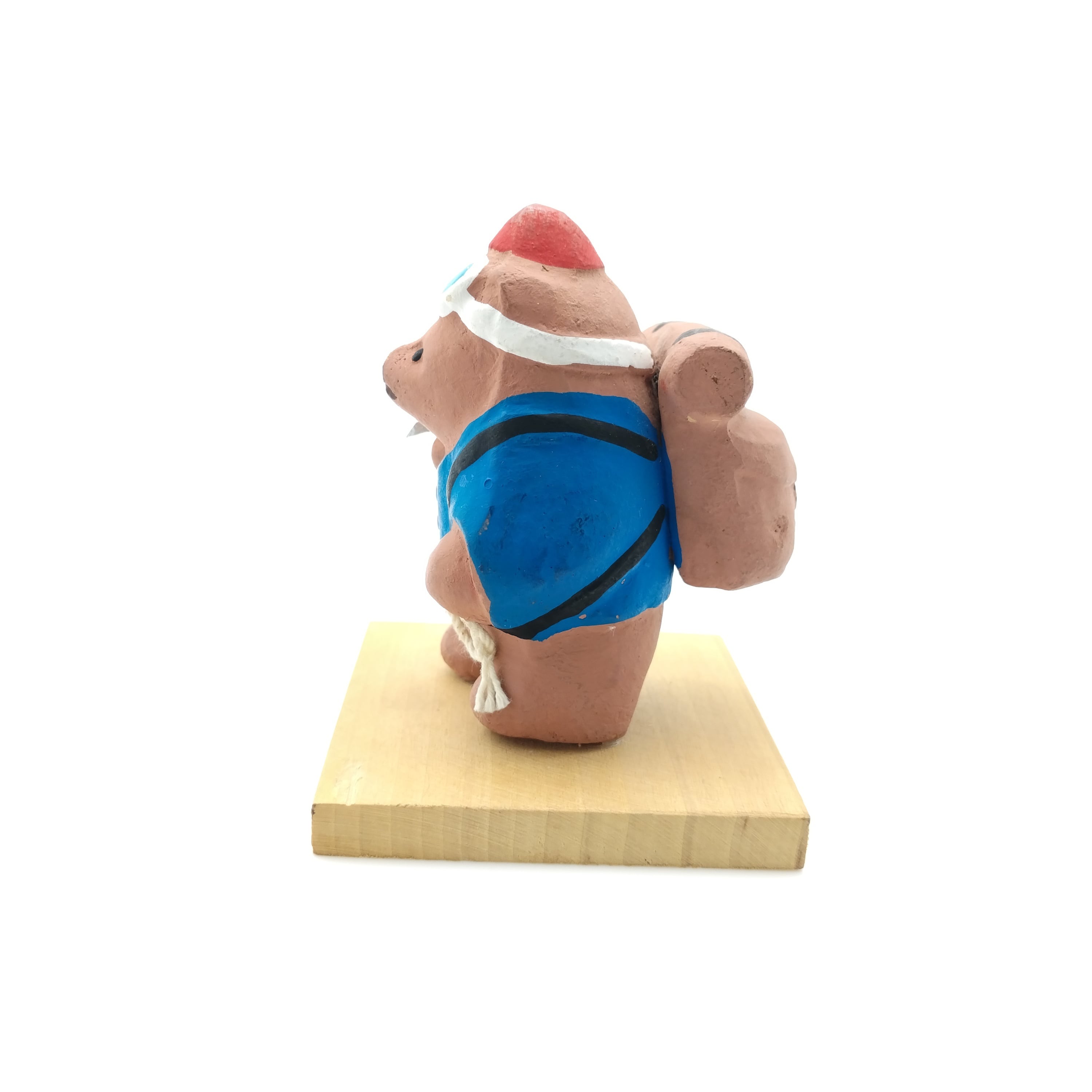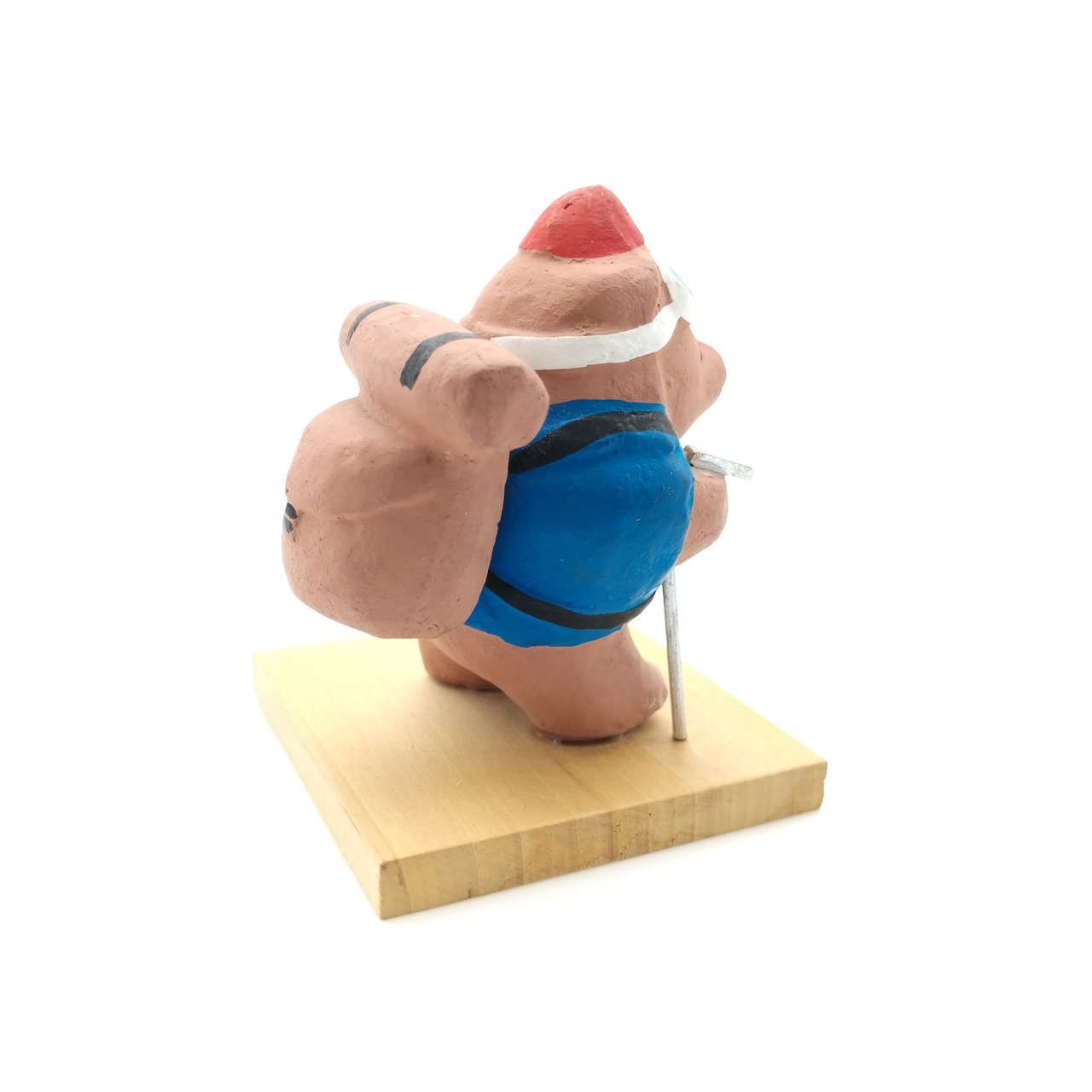 しっかり装備をして山登りをしている熊を表現した珍しい土人形です。