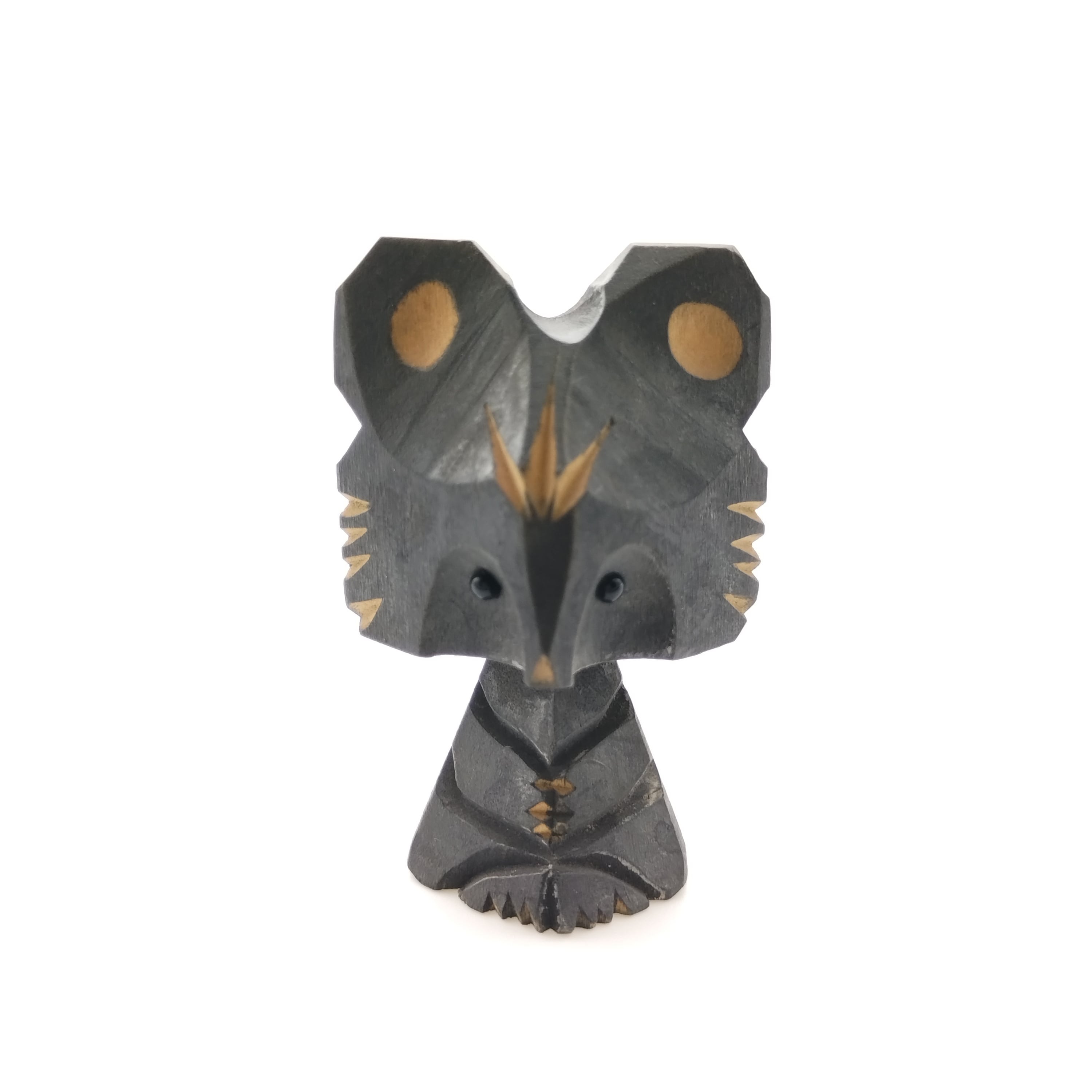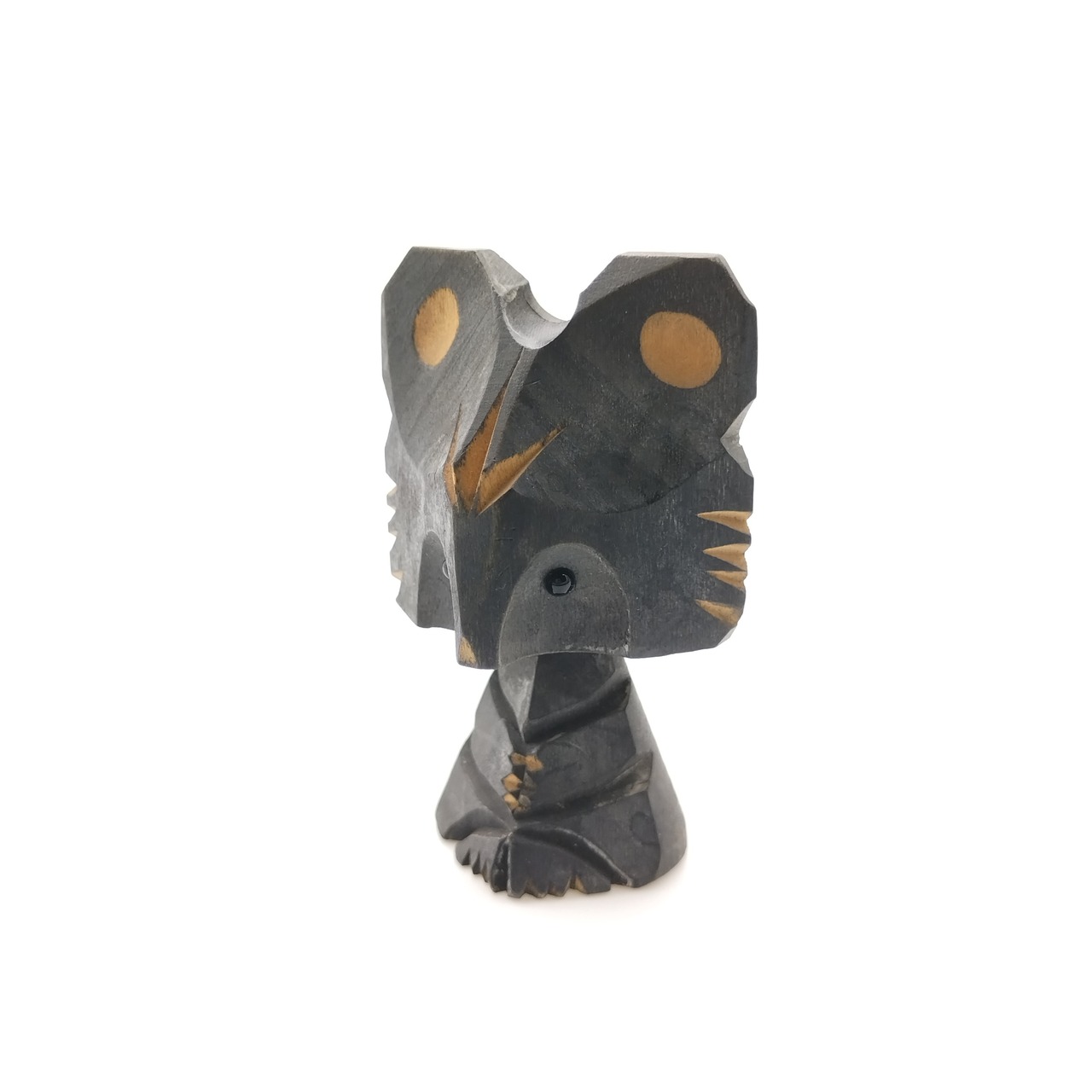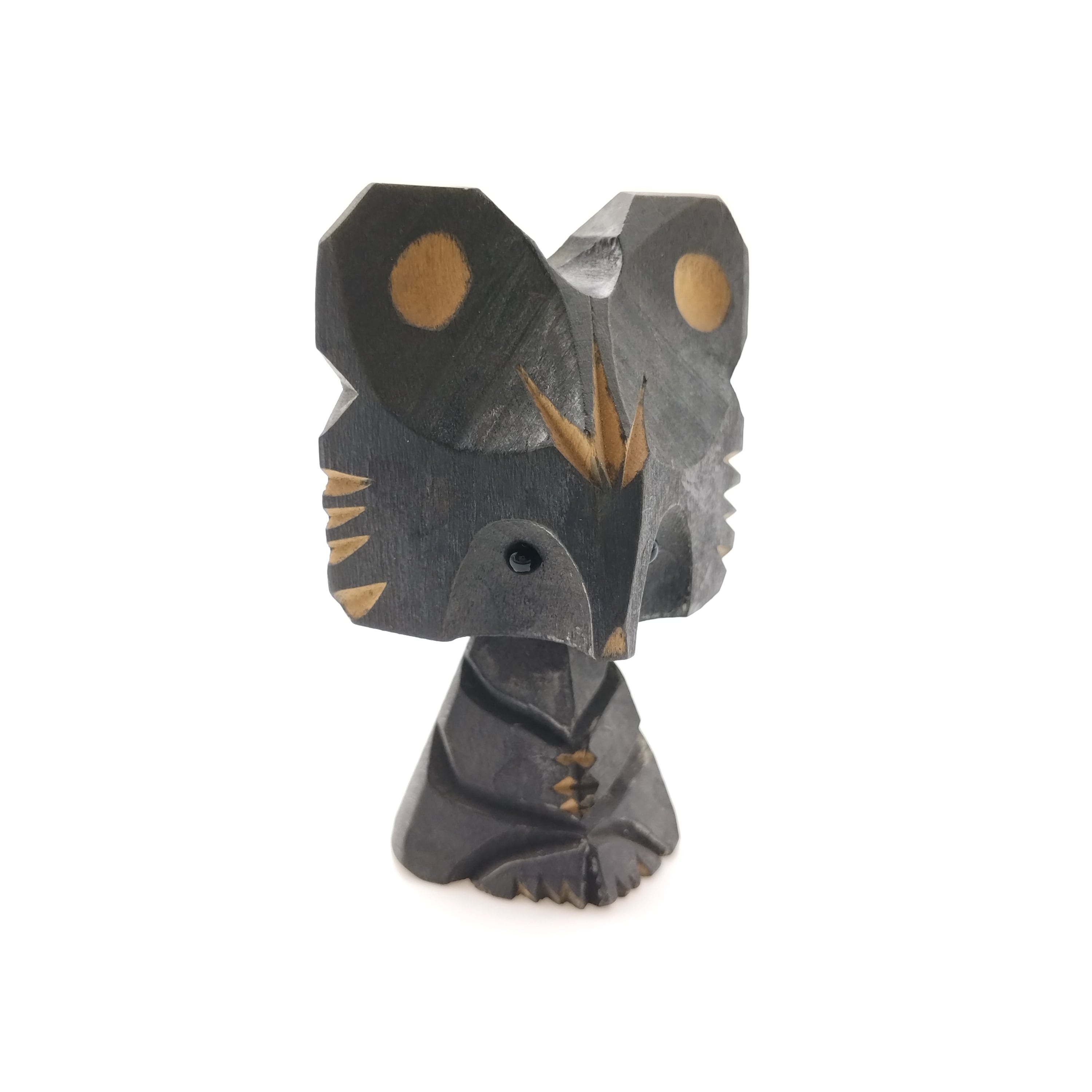 額に文様が刻まれた趣きあるガラス目の熊ボッコです。