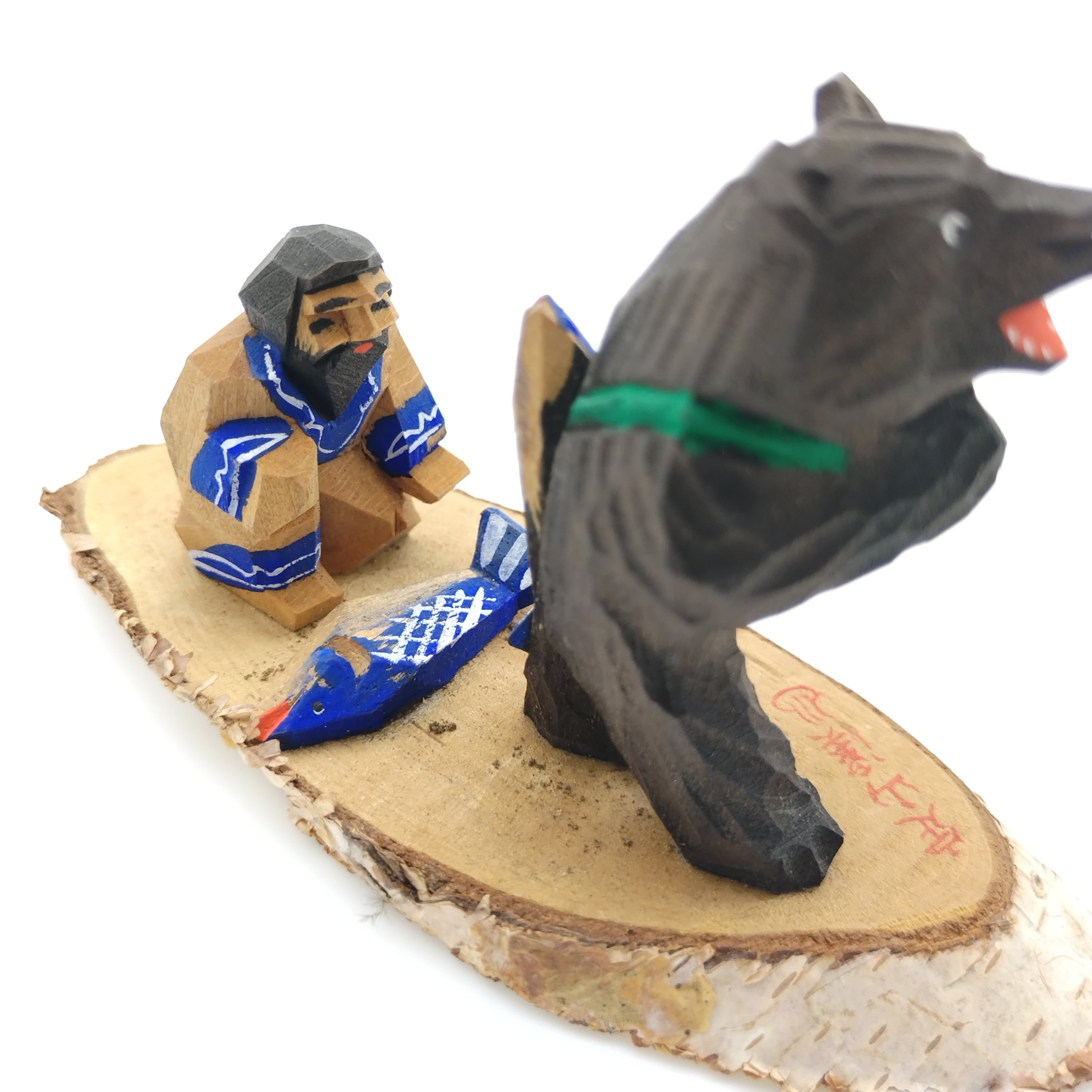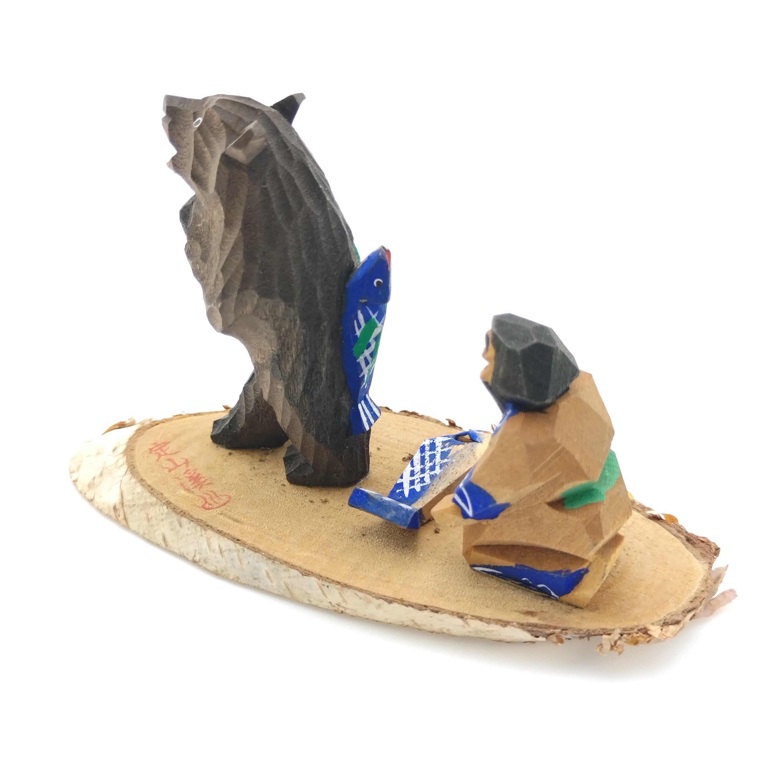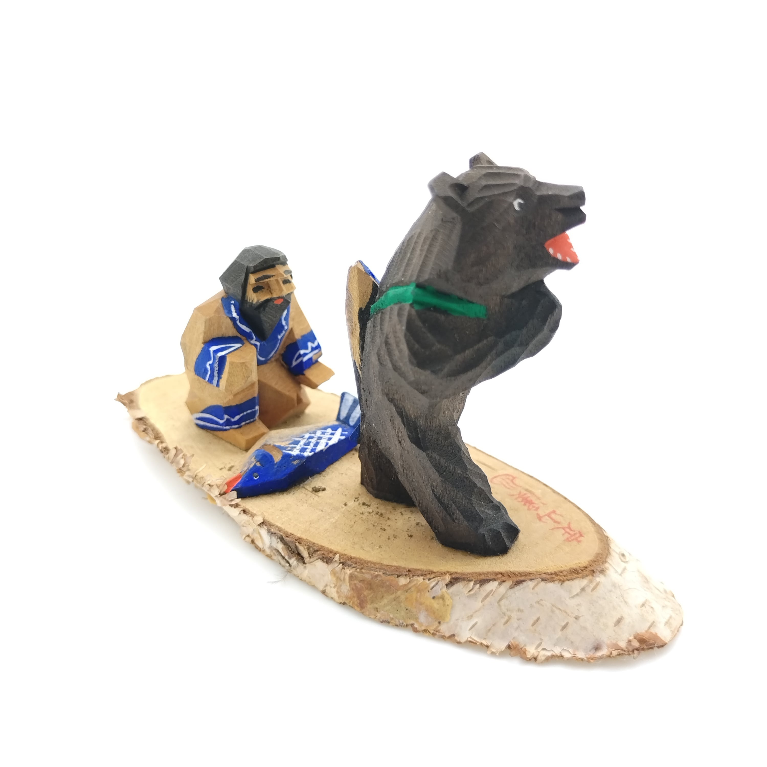 鮭背負い熊と鮭を捧げるアイヌ