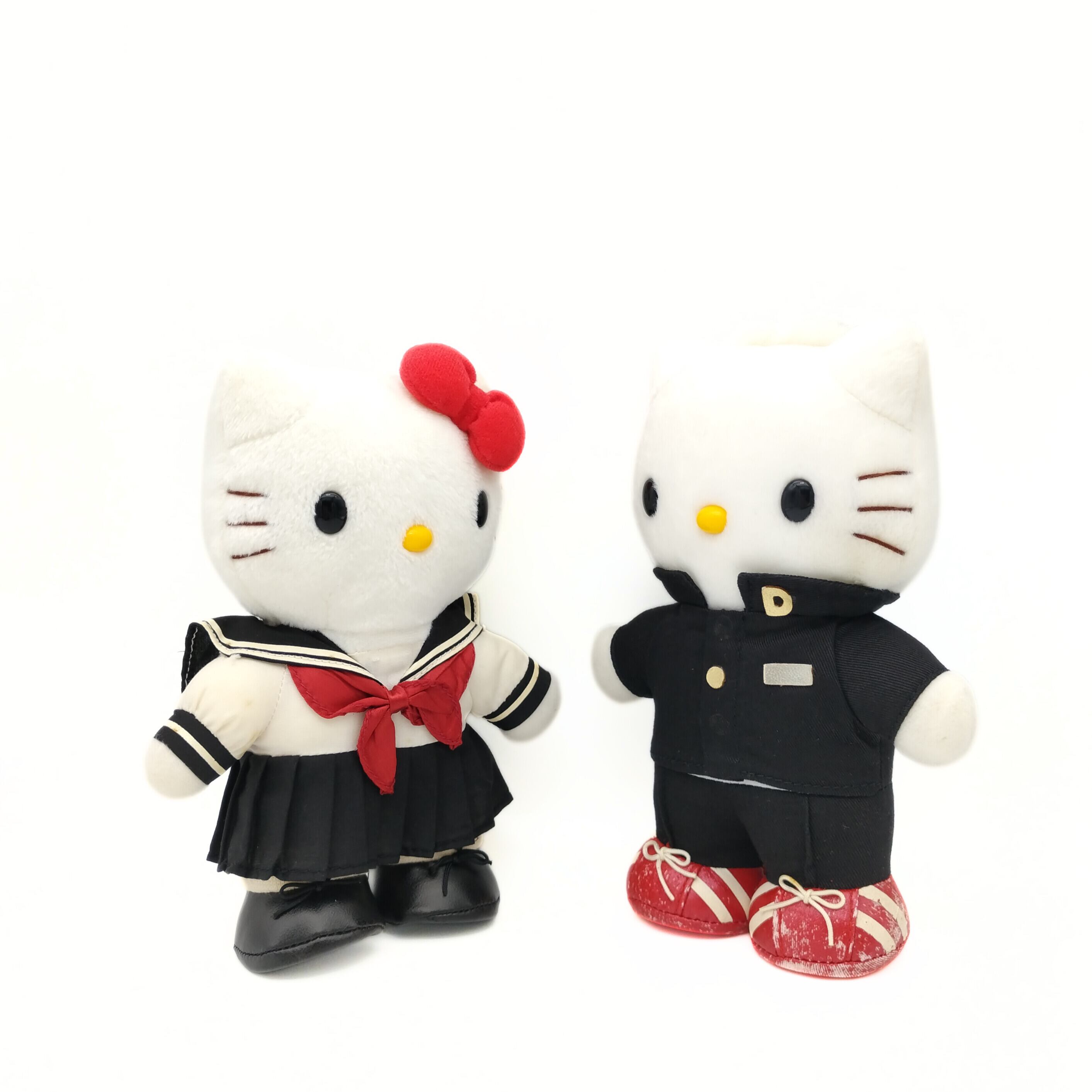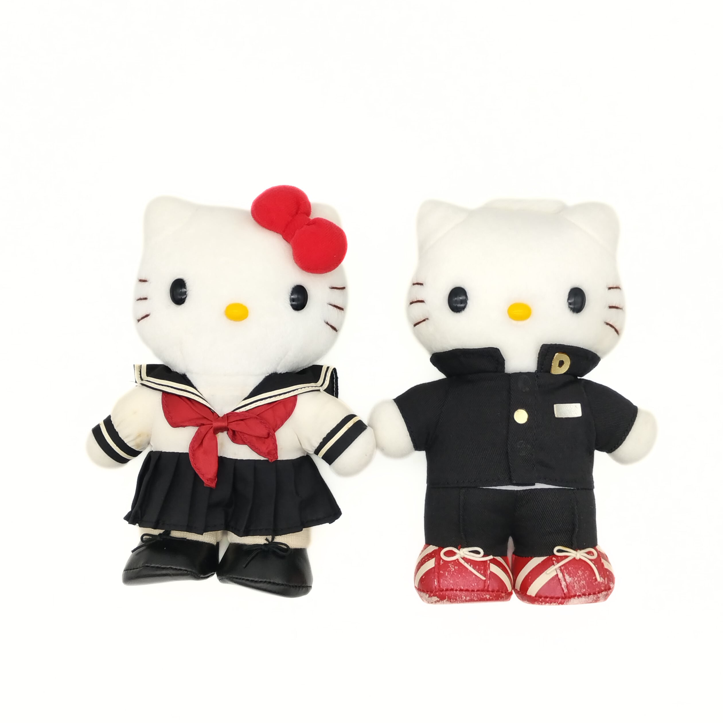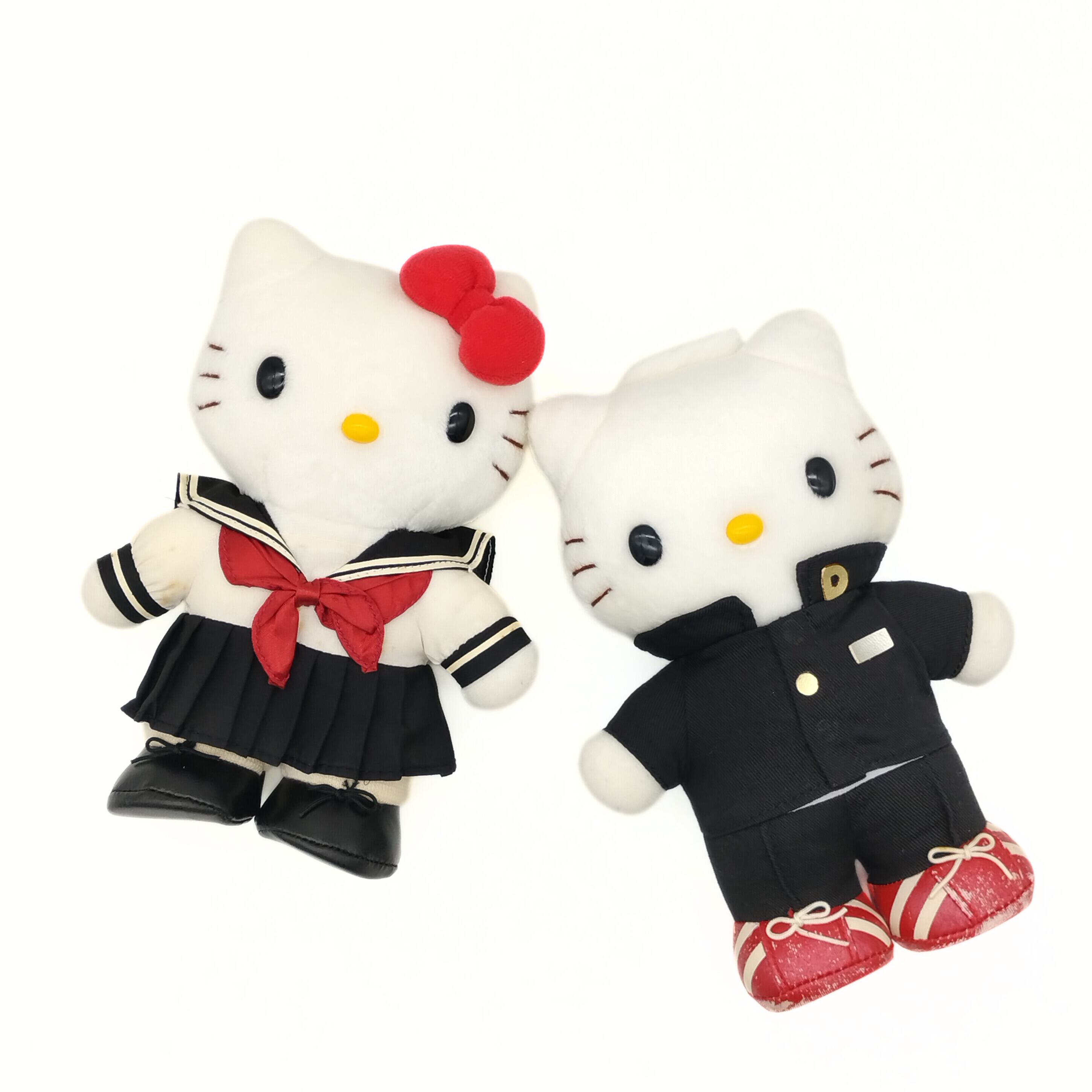 学生服を着たキティとダニエルのぬいぐるみのセットです。