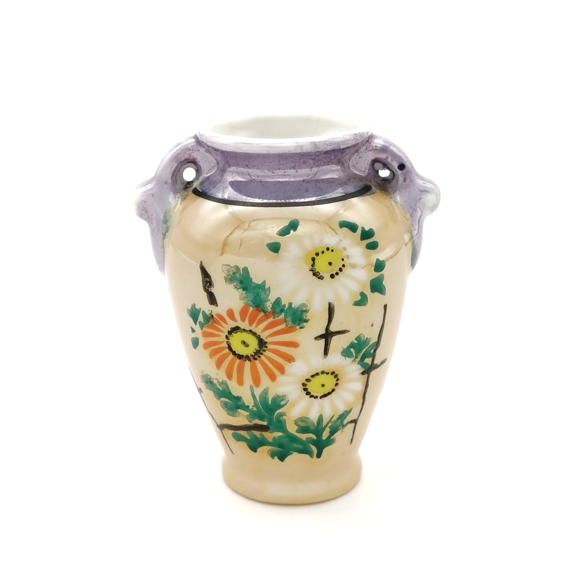 昭和中期の戦後日本では経済復興のため輸出用陶磁器がたくさん作られました。こちらは手のひらサイズなので、場所を選ばず一輪挿しやインテリアとして飾ることができそうです。