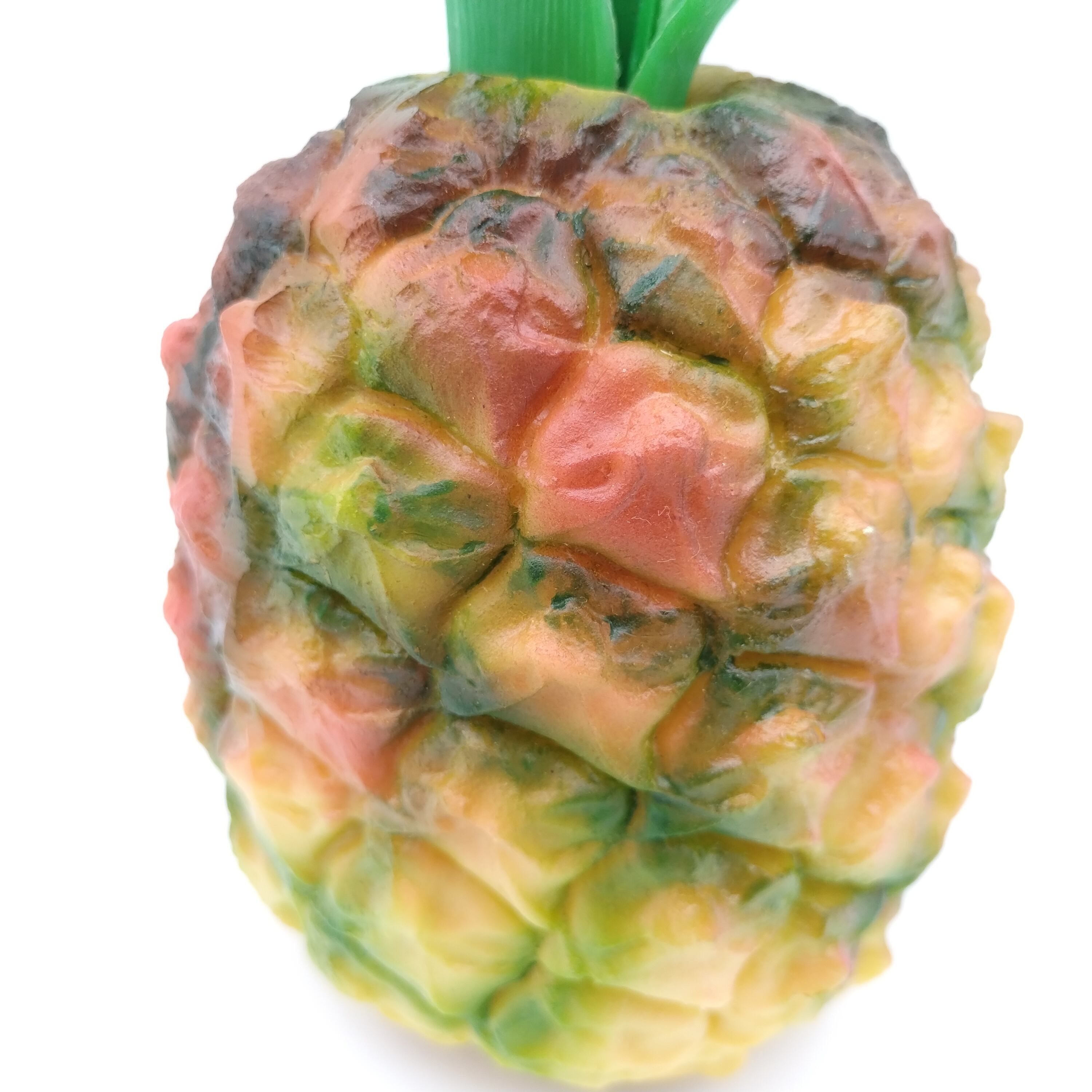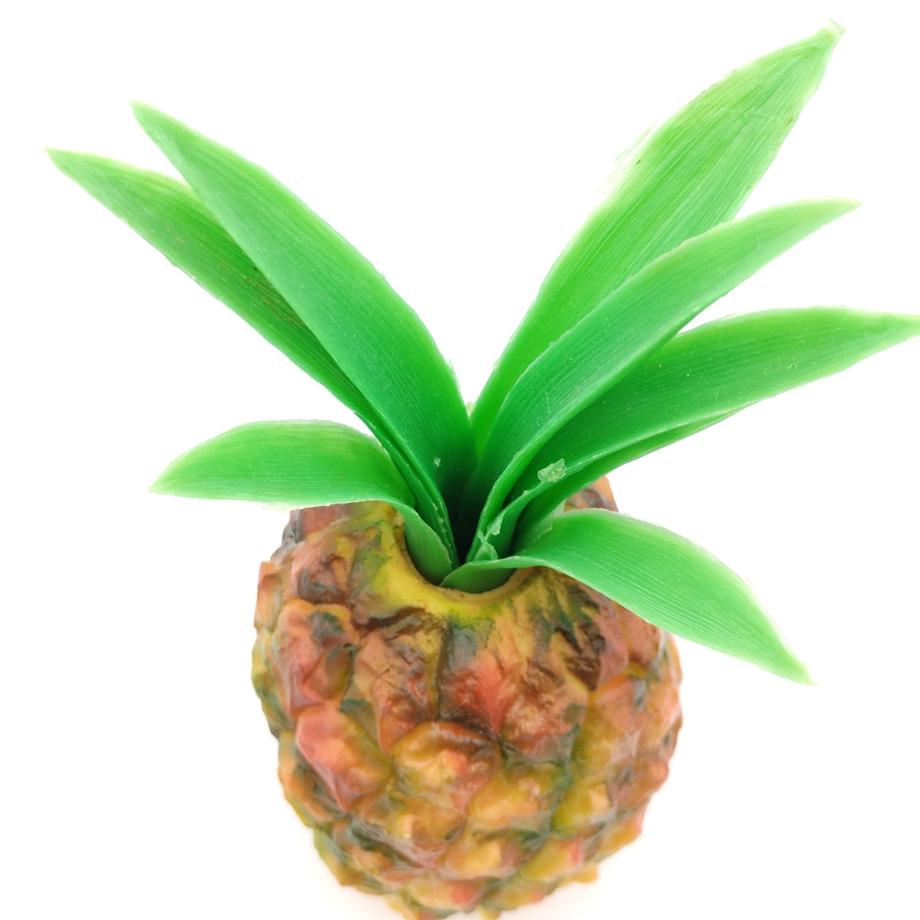 果物の食品サンプルです。パイナップルって果物の中でとてもファニーな形ですよね、お部屋にあったら見るたびにクスッとしそう。