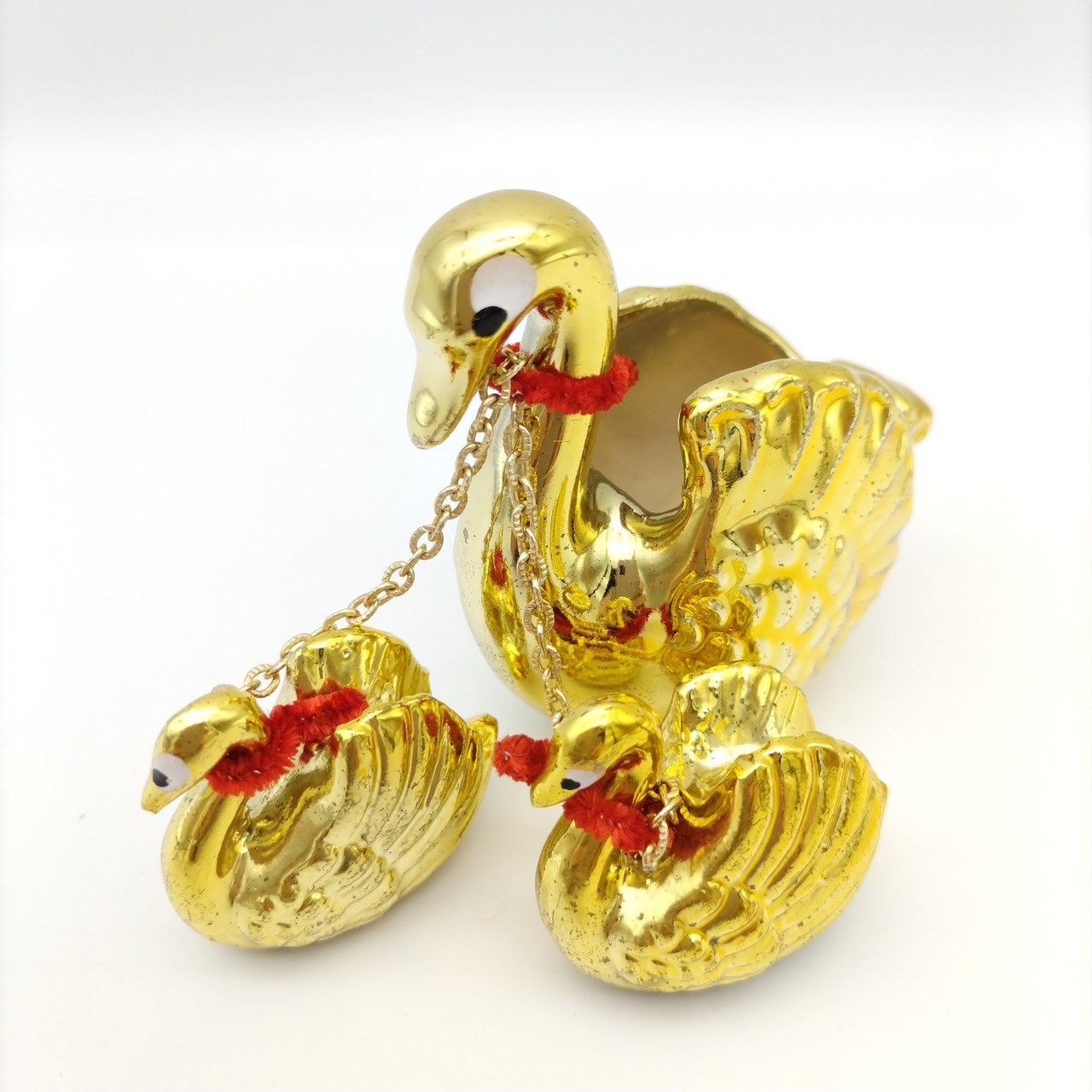 金の鳥親子のちいさな小物入れ