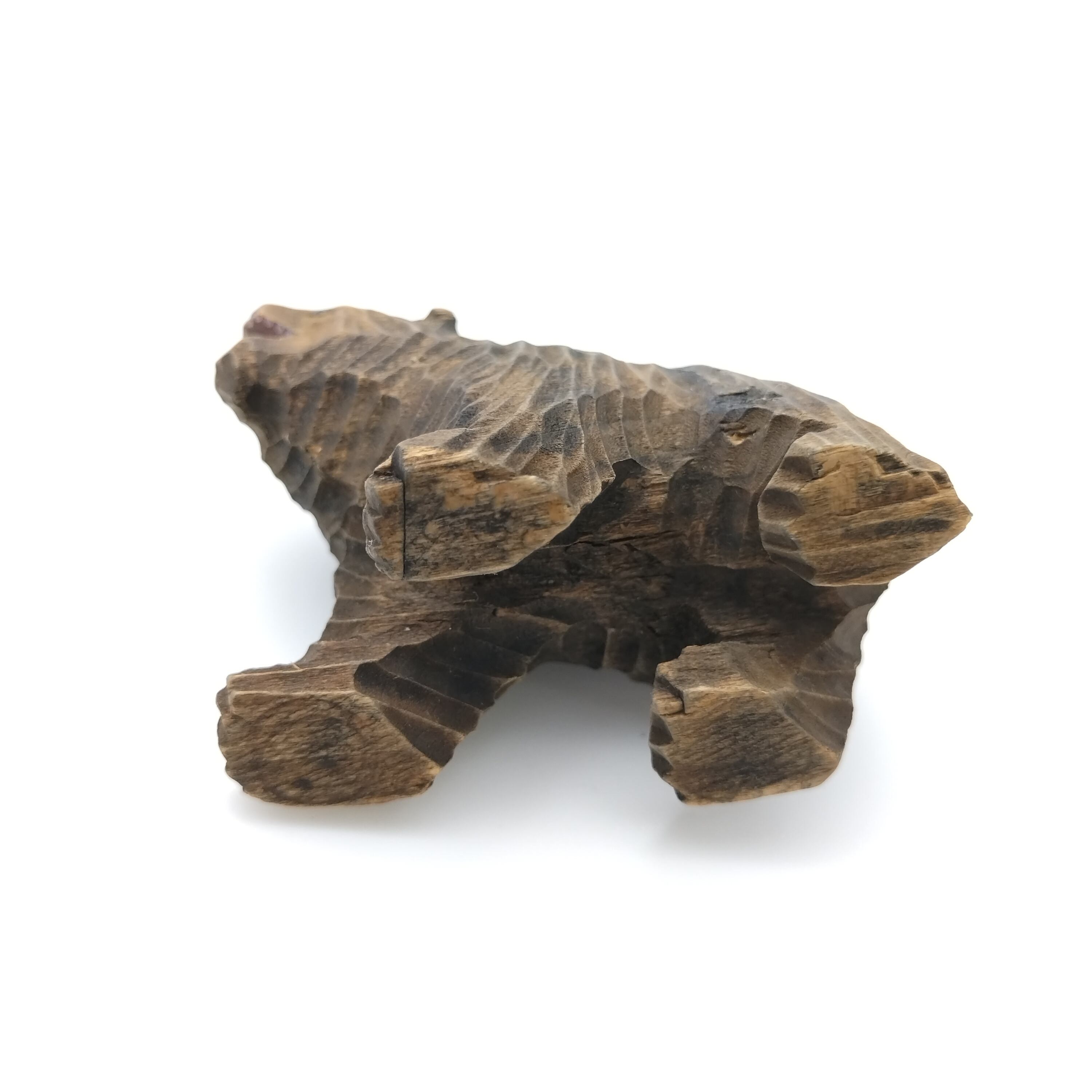 歯がキレイに生えそろったよ!とまるで言っているようにみえます。ぽってりボディにあどけない表情の木彫りの吠え熊です。