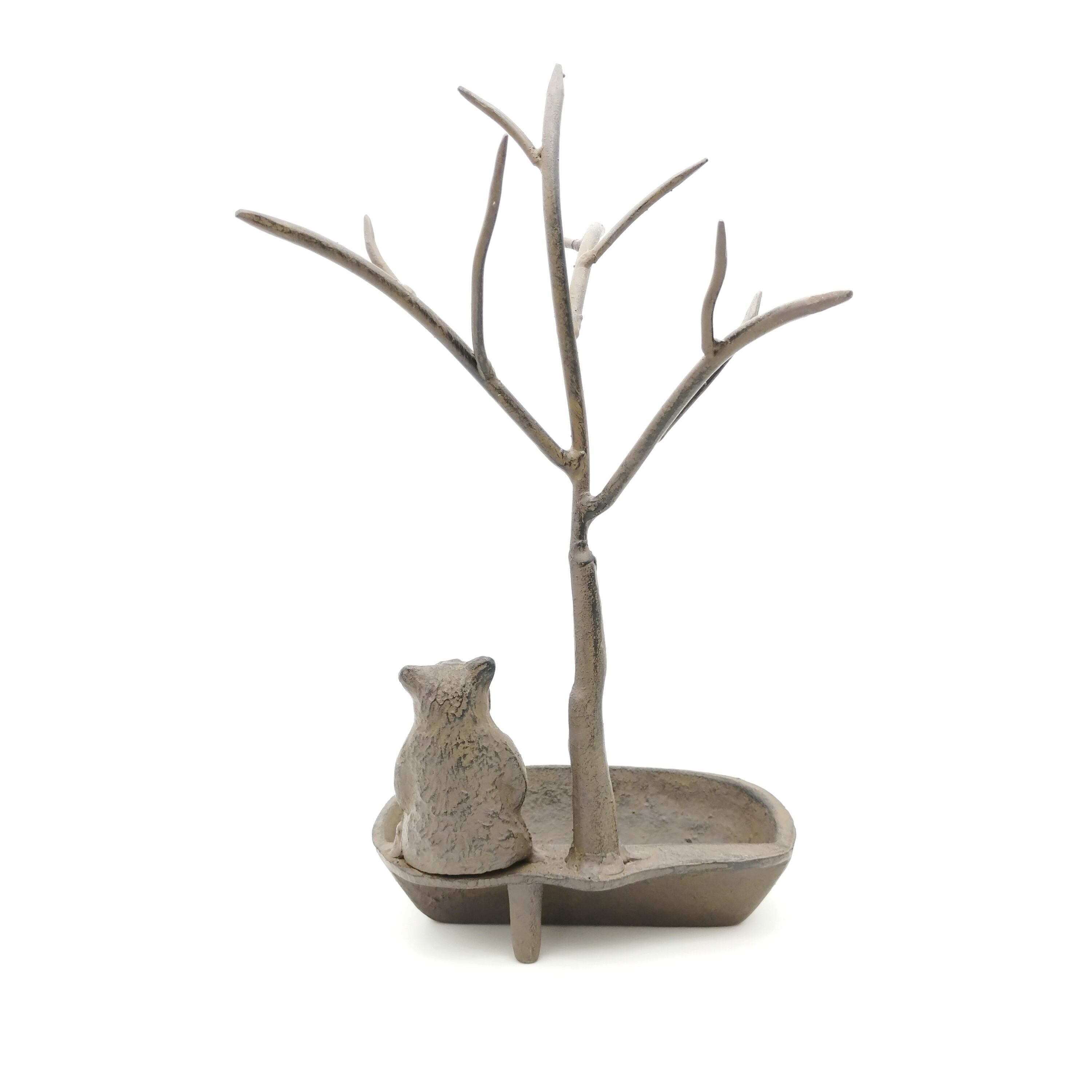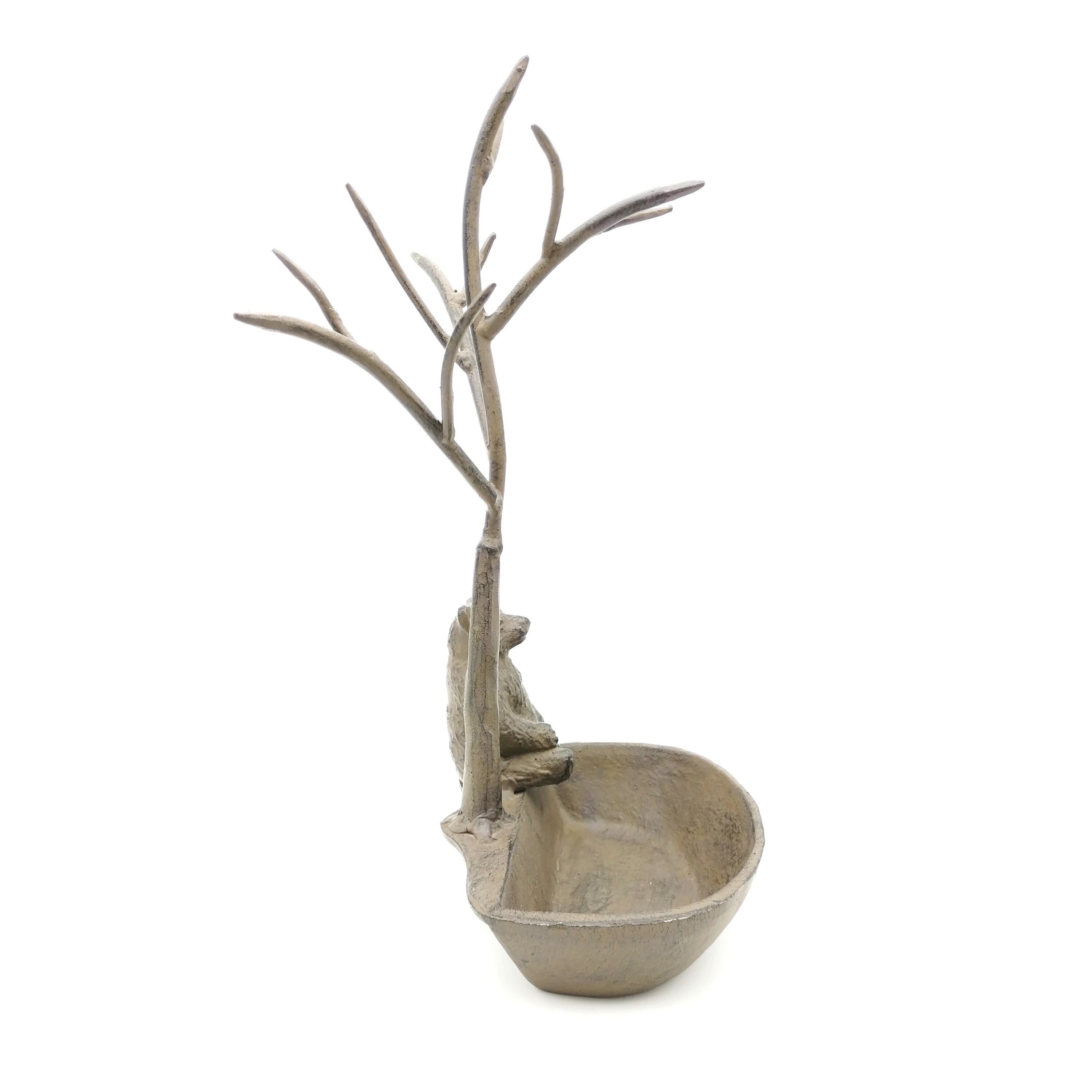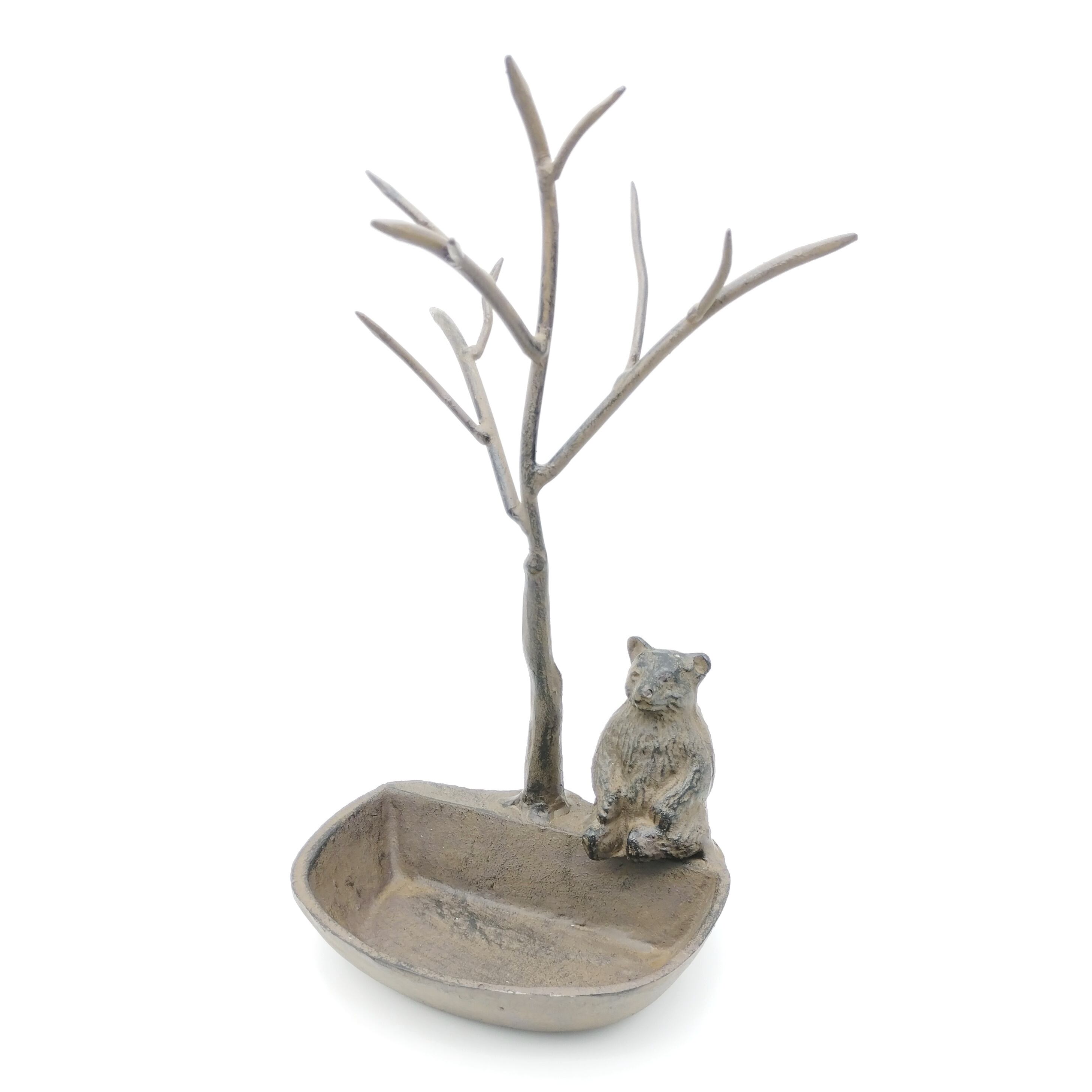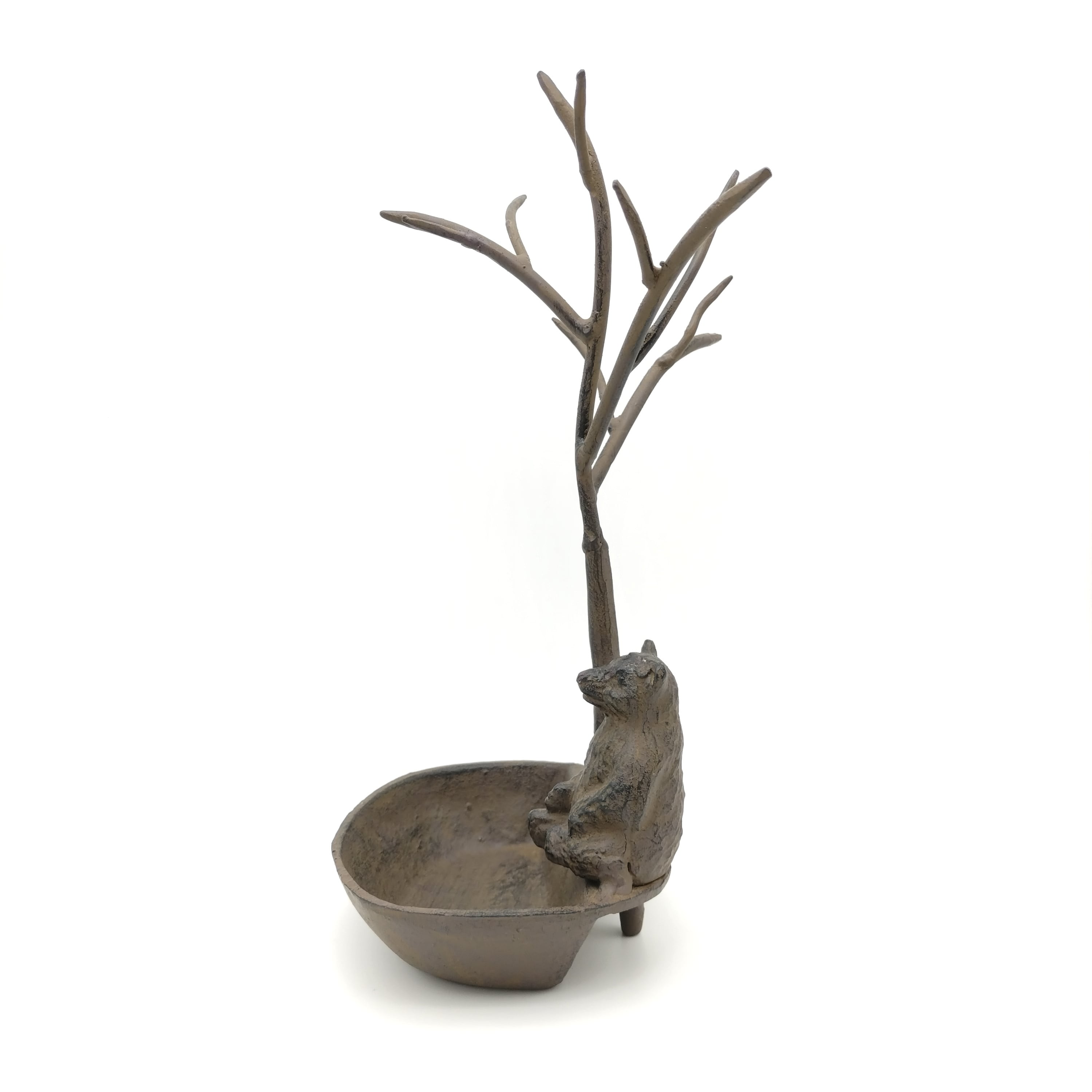 木の横に小さな熊がお座りしている存在感のある小物入れです。