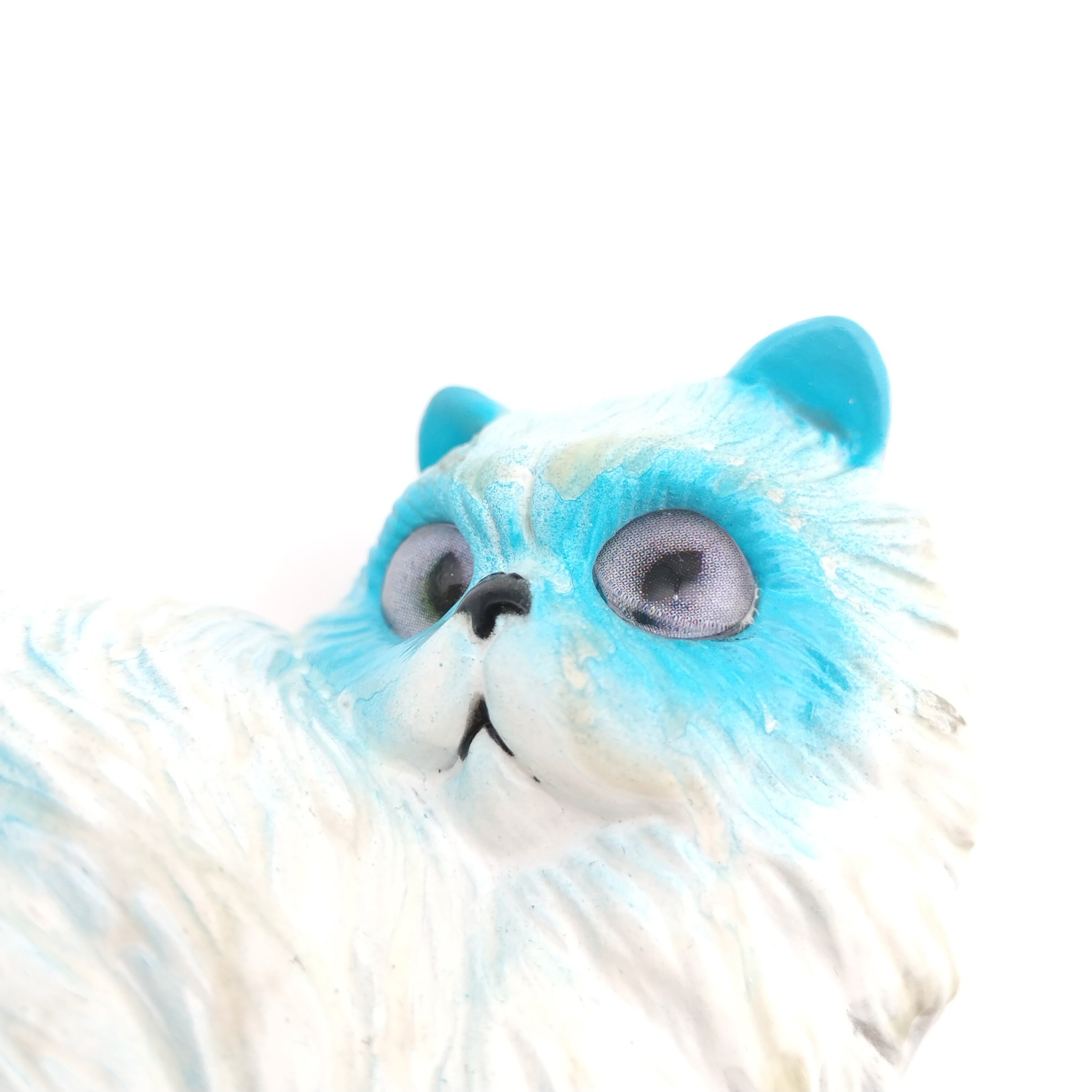 びっくり後ろを振りむいたクリクリお目めに晴れた空のようなカラーが特徴の珍しい猫ちゃんです。